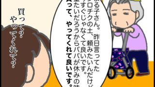 昨日のつづき。義母にシロチクの土をパパと一緒に買ってくるよう頼まれたのだが、気になる言い方をされた。夜、仕事から帰ってきたパパに伝えると…