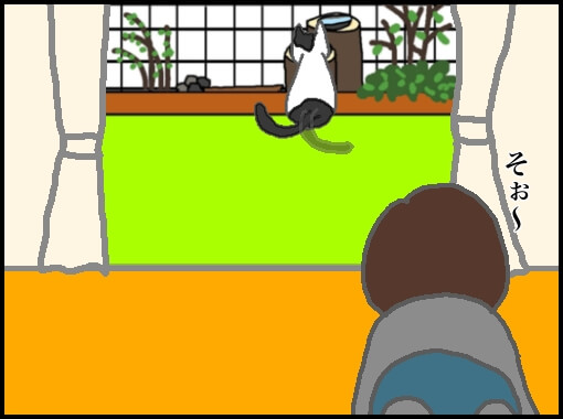 そっと窓際に移動すると、よく見かける猫が花壇の上にいた。