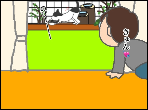 と伸びをして、梅の木で