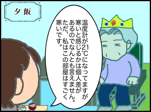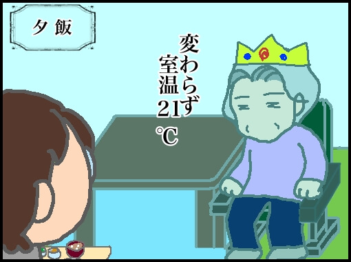 とこれまたいつも恒例のやり取り…。現在室温、リモコンの設定温度ともに21℃