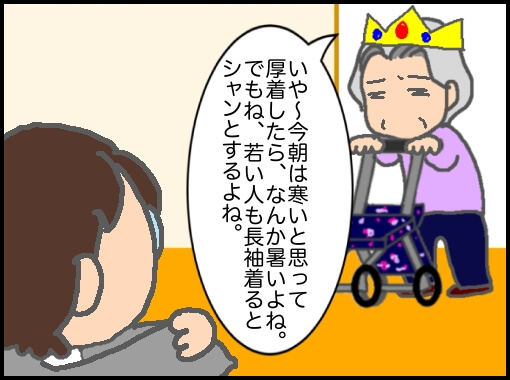 今朝、肌寒かったので1枚上着を羽織っていた。しかし、家事をしているとちょっと暑いと感じて上着を脱ごうとした時、義母がリビングにやってきて