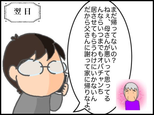 翌日、訪問看護で義母がお風呂に入っている隙を狙って母さんに念のため電話すると