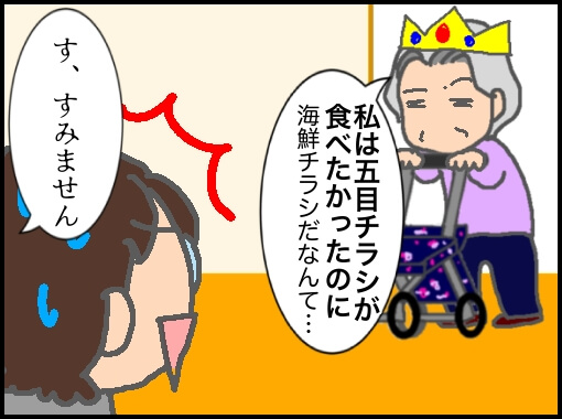 こちらの確認不足ではあったが、買う前に言ってくれてもいいじゃんとも思うし、チラシ寿司って言ったんだから五目だろうが海鮮だろうがどっちでも食べられるんなら黙って食べて終わりにしてくれてもいいじゃんとも思ってモヤモヤ…。