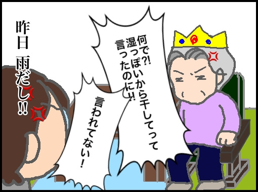 おととい一式洗って、昨日は雨…。そもそも昨日は頼まれていない。雨でも干せば良かったのか⁈💢