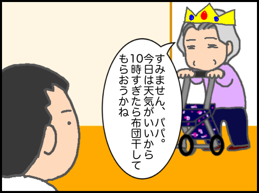 10時を過ぎているので早く布団を干せというプレッシャーがかけられてパパと一緒に布団を受け取りに。そろそろこたつを頼まれそうな気がしたのでついでにこたつ布団も風通しした。