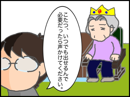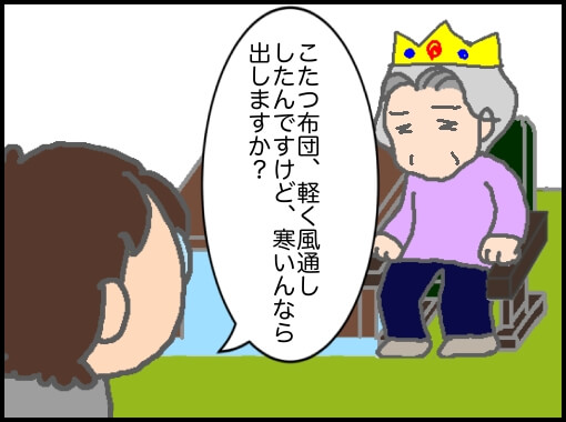 義母は夜〜明け方、凍えそうだと言っていたのでこたつを出すか確認しに行った。