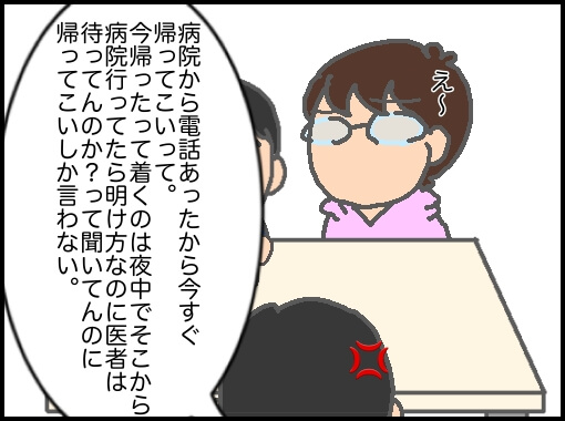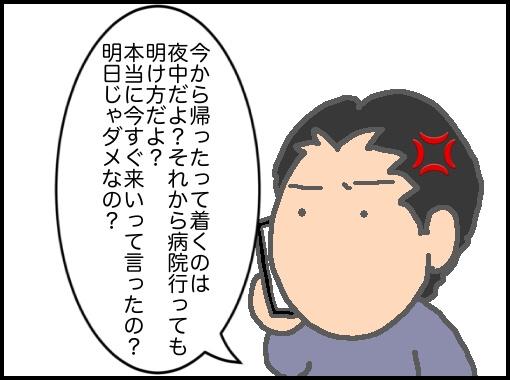 義父が検査入院中、診療時間外に病院から電話があり今すぐ帰ってこいと義母から電話があった。パパが緊急事態なのか確認しても返事をしない。ただただ帰ってこいと言うばかり。怒ったパパが