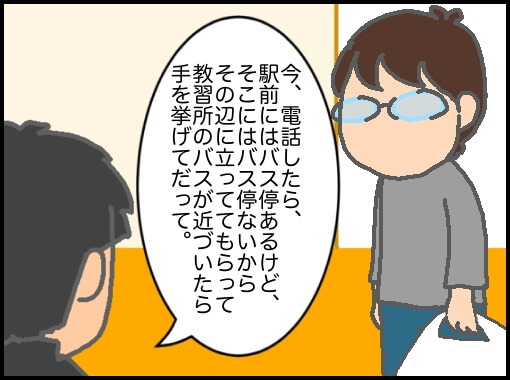 今日は王子が教習所で初めて技能講習を受ける日。送迎のバスの予約をしたとのことで、出発時間までにバス停を探しておかなければならない。