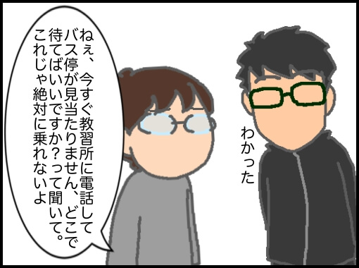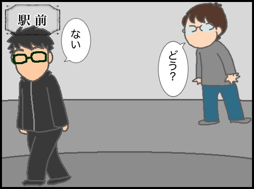 もう一つのバス停である駅前も探してみる。しかし、他の教習所のバス停は見つかったが肝心の王子が通う教習所のバス停は見当たらない。グルッとロータリーを回ってみたが見当たらず…。