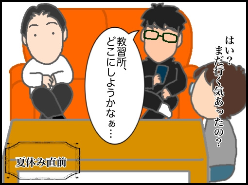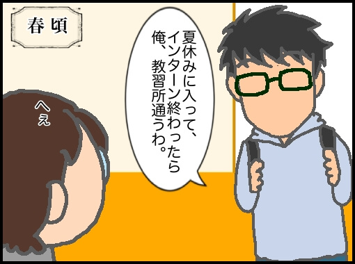 しかし、それ以降特に動きもなく夏休みに突入…教習所には行かないことにしたのかと思っていたインターン直前…
