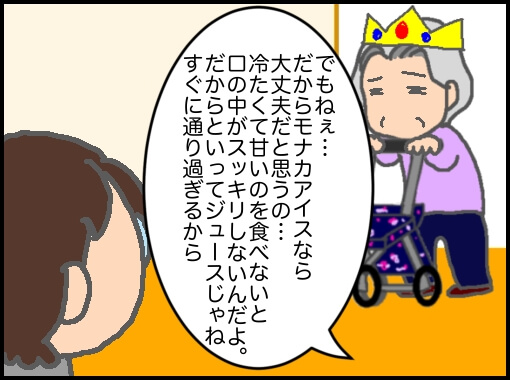 日中の暑い時間帯にアイスを食べるのは理解できるけど、真夜中に毎晩食べる必要性を訴えられても全く理解できない。しかも昼夜2回食べるって…食べなきゃって思うって…頭の中がもうアイスに支配されてことあるごとにアイスの話をしてくるくらい、アイスは義母にとって深刻な状況になっている。