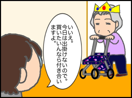 出掛けないが、義母が買いに出掛けたいなら良いリハビリにもなるので声掛けするも…