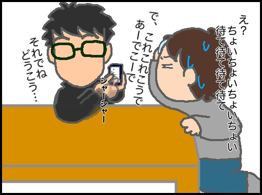 なので喋りながらスマホの画面をスライドさせてつつ説明を受けるのだが、私はただでさえ老眼。ただでさえ読むのが遅い。ただでさえアナログおばさんは理解するまでに時間がかかる。故に…