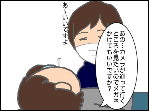 どっちの鼻の穴にカメラを通すか選べるらしい。昔の記憶だと右だった気がするが、最近右の鼻から鼻血がよく出るので今回は左にしてみた。
