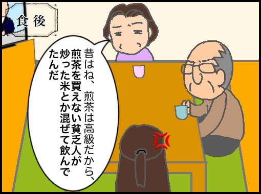 と言われ、食後に玄米茶を用意したら