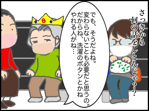 と隣に立って一緒に操作し、スタートボタンを押すところまで一緒にやって立ち去った。洗濯が終わったら義母に呼ばれて干すよう頼まれたので、取り出して干した。
