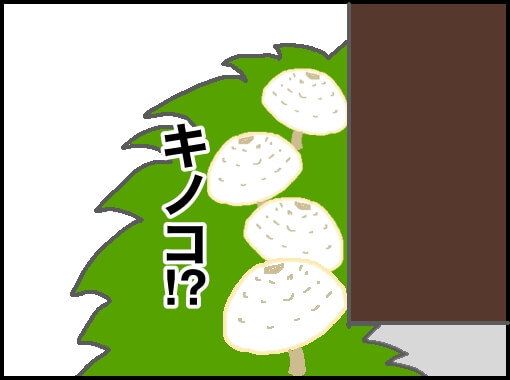 私の手のひらサイズの巨大キノコが4つ、縦に並んでいた。今まで20年以上住んでてこんな大きいキノコを見たのは初めて。しかも前回のゴミ捨ての時には無かったのにいきなりこのサイズに急成長する種類なのだろう…。