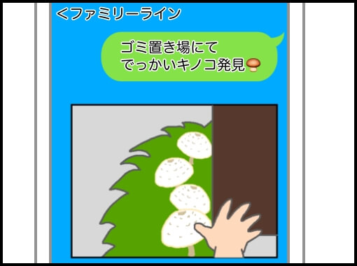 そして家族にLINEでキノコの大きさを伝えるために私の手と一緒に写真を送信した。