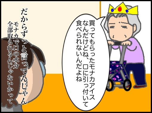 どうしても夜中のアイスが我慢できない義母。◯リ◯リ君は添加物のせいで胸焼けすると言われ、モナカアイスにしてくれと頼まれ買っておいた。午前中、義母がリビングにやってきて