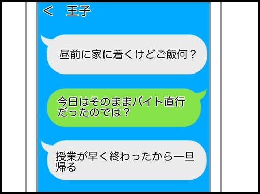 確かに出勤前のパパを呼んでシップを貼ってもらってたな…。今日は義姉が来る気配もない。ぼちぼち家事を進めていると王子からライン