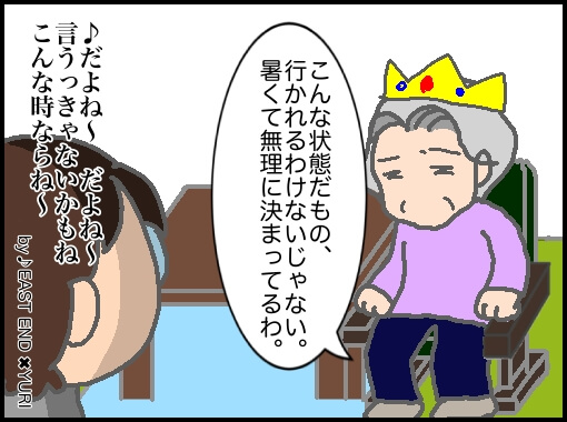 義母と出掛ける時は、病院であれスーパーであれ、ロータリーもしくは建物に一番近い駐車場に車を停めているのだが、それさえも暑くて具合悪くなると言われたら通院以外どこへも出掛けられない…。
