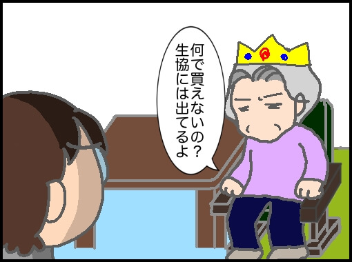 カタログでは毎週のように出ているのになぜ買えないんだと問い詰められる。でも売ってないものは売ってないし、生協のカタログで見つけてるんなら生協で買えと言うのだがなぜかずっと買わない。