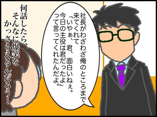 私もよく喋る子で知らないおばさんに抱きつかれて『あなた芸人さん?もう、話聞こえちゃって堪えきれなくて吹き出しちゃった』と言われたことがあるが、あくまで友達との会話程度。私は大勢の前に立つと緊張して喋れない…というか喋れるけど記憶がない状態。