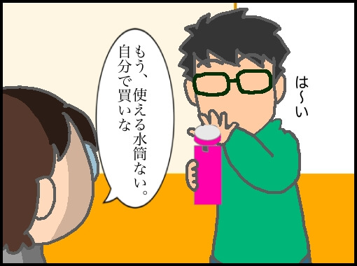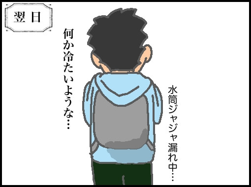 前に使っていた水筒を急遽出して持たせたらパッキンがダメになっていたらしく水がジャジャ漏れ。学校に到着する頃にはカバンや着ていた服までびしょびしょになっていたとのこと。
