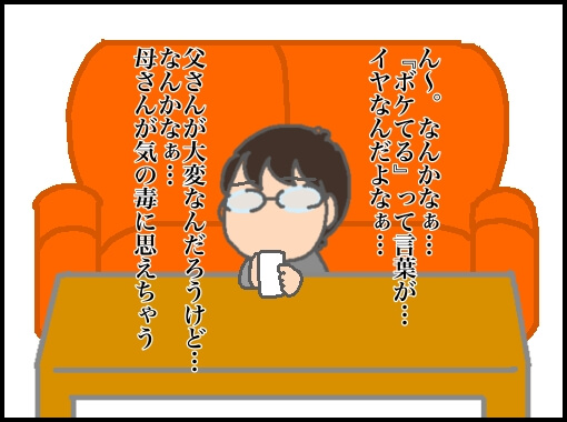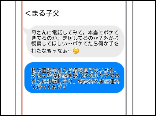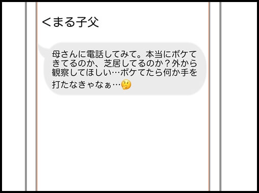 帰省から戻った後も父さんから『母さんがおかしい』『認知症だ』『ボケだ』とメールが来ていたが、母さんと電話で話す分には違和感がなかった。でも体を動かさないでいると脳にもそういった症状が出るのかもしれないと思い、『母さんは認知症なんだ』と決めつけてしまっていた。