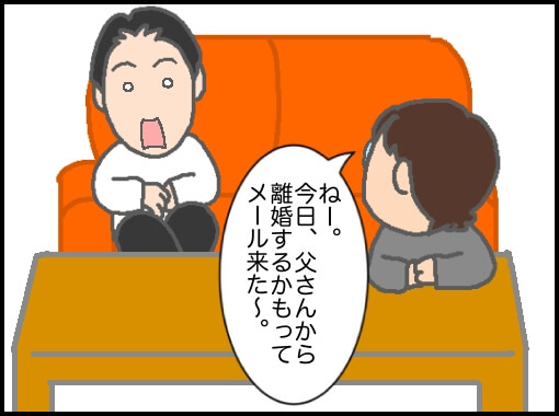 父さんはその態度に余計に腹が立ったらしく離婚の話になったのでもしかしたらそうなるかもという連絡だった。