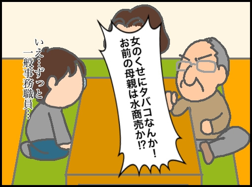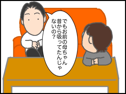 と、私が義父からめっちゃ怒られれる羽目に…。義父も父さんと同じくタバコを吸う女性が嫌いだったのだ。妊娠中の私を慮ってのことだと思った方。