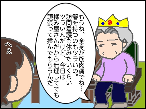 全身筋肉痛で握力もなくなるほどツラいとのこと。これも義母の場合、通院あるあるで予想通り。