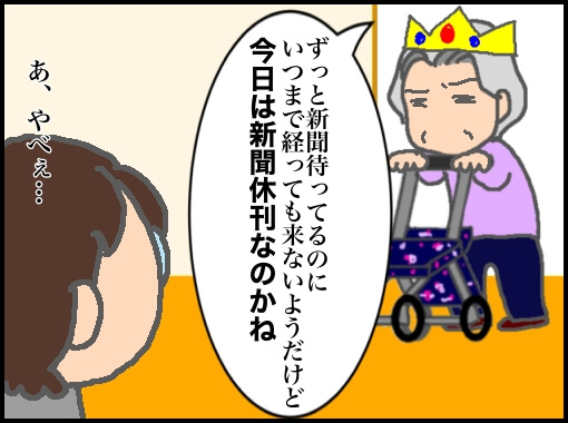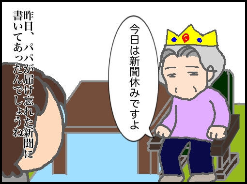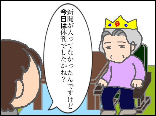 義母は毎日、新聞を読んでいるので休刊日でないことは分かっている。毎朝、私が義母の部屋に新聞を届けるのが日課なので私に嫌味を言ってきた。
