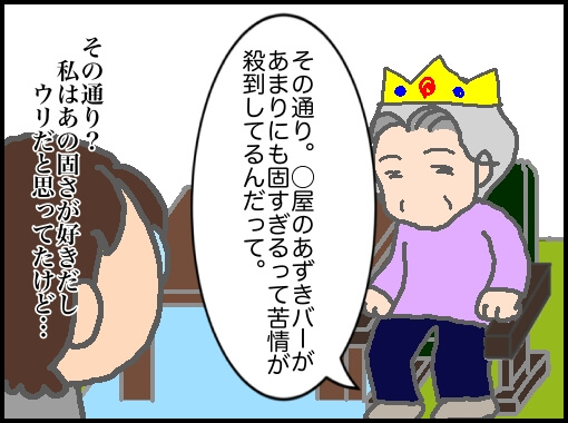 さっきから何の相槌だ?全然噛み合わないんですけど…。よく分からないままあずきバーのうんちくだけ聞かされて終わった…