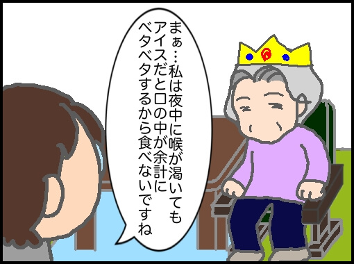 義母は喉が渇くと言って冬はアイスクリーム、夏はかき氷を『夜中にも』食べる。食べると口の渇きが落ち着くらしい…ちょっと理解できない習慣。