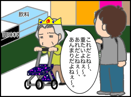 しかし義母との買い物は自分の買い物は一切できないし、商品も『これ』『それ』と指をさすだけで商品を取るのもカートを押すのも私、支払いも義母の財布を預かり私が払って荷物も詰めて私が持つ。だから際限なく買って車はパンパンになる。