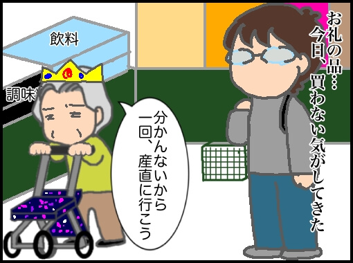 買い物のメインだったお礼の品はお金が足りなくなり、後日私に買ってこいとのこと。