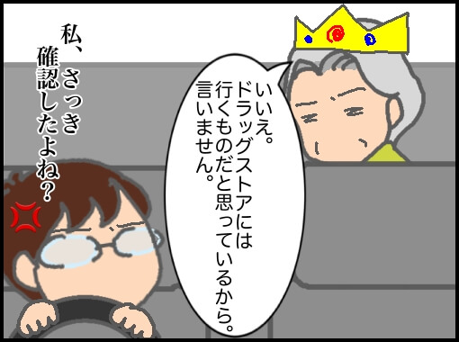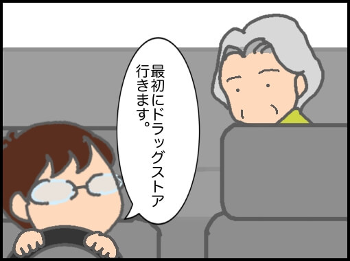 と言われたのでそのまま方向転換をしてドラッグストアへ。あとあと道中で話を聞いていると義母は自分が歩くのが疲れるからではなく、私が運転であちこち回るのはめんどくさいだろうと私を気遣って発した言葉だったとのこと。