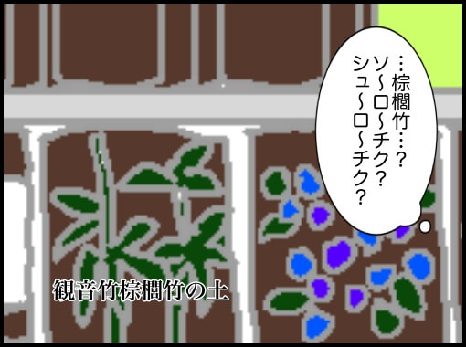 一瞬だけ『竹』の文字が見えた気がして、通った道を戻ると『観音竹棕櫚竹の土』と書いてあった。