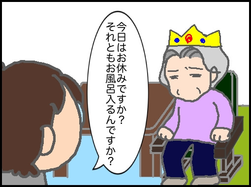 訪問看護を始める前…直腸脱後、デイケアに行きたくなくて、その期間、自宅での入浴は腰の悪い私たちでビビリの義母をお風呂の洗い場に連れて行くのもましてや浴槽に入れることも無理で何ヶ月も体拭きシートだけで過ごしていた。