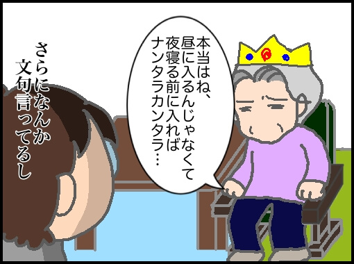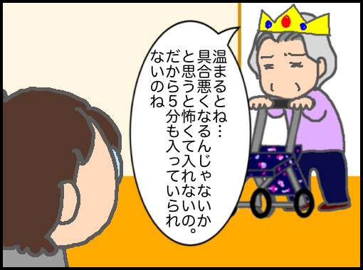 5分の入浴のために朝から風呂掃除して水滴を拭き上げて湯を張り、訪問看護入浴が終わったら湯を捨て、掃除して拭きあげしてまた夕方のお湯張りをするって思うとだるく感じるが…