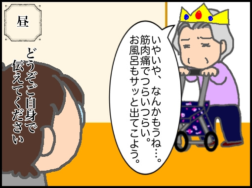 と私から看護師さんに伝えさせるために大きな聞かせごとをする…。昨日は義母お気に入りの理学療法士さんのリハビリの日だった。リハビリ前に全身の凝り固まった筋肉をほぐすためのマッサージがお気に入りだが必ず翌朝筋肉痛になっている。