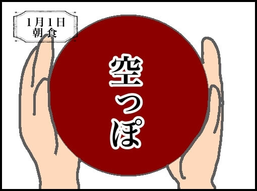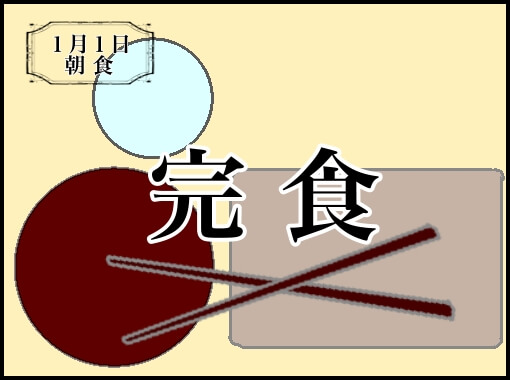 そして1月1日の朝食。去年のゴタゴタも覚えていたので雑煮の餅もクタクタになるまで煮て出した。