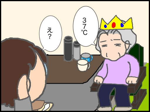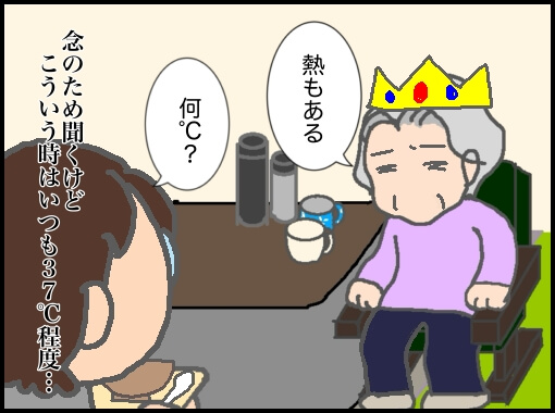 義母が明確に何℃と言わないときは熱はない。が、念のため確認する。