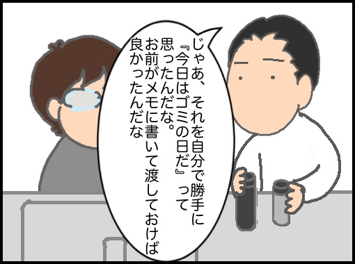 義母が何をどうしてどーなってこの解釈になったのか、私はゴミの日か聞かれて『いいえ』と答えただけで勘違いするような余計なことは話していない。パパに私の対策不足を指摘されたが