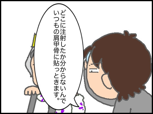 と肩甲骨に貼った(笑) 何の意味もない場所だけど本人が安心すればそれで良かろう(笑)