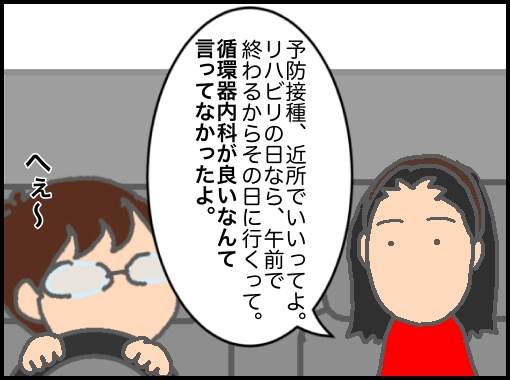 義母は訪問看護の看護師さんにも予防接種について相談していて特別な病気じゃないから大丈夫と言われたらしいが義母は自分は特別な病気だと思い込んでいるからどうしたらいいか分からなくて義母が決めるのを待っている状態だと伝え婦人科へ出かけた。